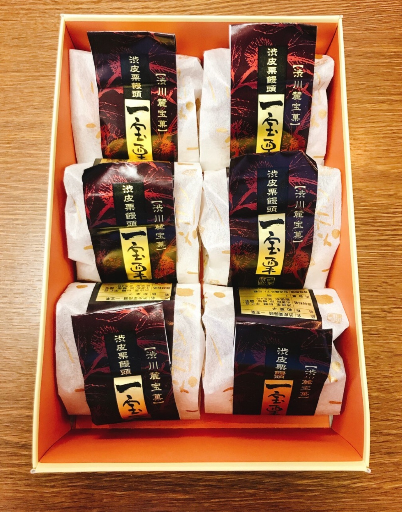 渋皮栗を丸ごと一個白あんでくるんだ大変贅沢な栗饅頭です。 六個入りです。贈答用にどうぞ。 賞味期限は、発送日を含め、14日間です。